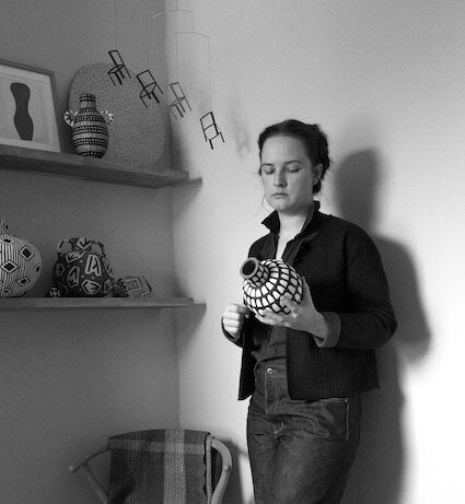 Lydia graduated from the Royal College of Art in 2013. Primarily using clay, she works across the fields of art and design. The bold designs are rooted in her appreciation for symbology and geometry and combine methods such as inlaying, sgraffito and painting with slips.Â